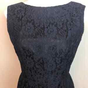 Vintage 50s 60s Wide Neck Lace Floral Wiggle Dress Small Medium Pin Up Cocktail