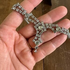 Vintage 50s 60s clear rhinestone faux diamond formal necklace clasp closure