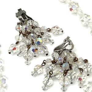 Vintage 50s AB Crystal Faceted Dangle Cluster Clip On Earrings 1.5in | Materials: AB Crystal | Length: 1.5in | Clasp: clip on | Signed? no | Excellent vintage condition