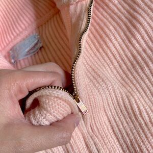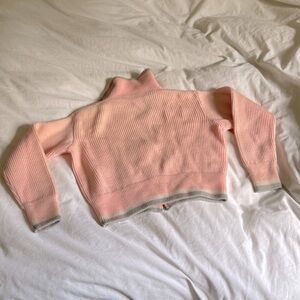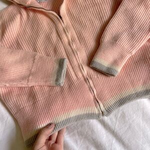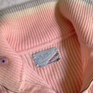 True vintage American piece, talon zipper pictured. Amazing condition for its age, no rips or stains. Turtleneck sweater with ribbed fabric, super thick wool. Stretchy and soft. Gray and white and pink colors, rare colorway.