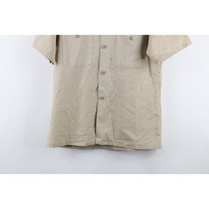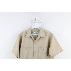 Vintage 50s Big Mac Mens Medium Distressed Work Mechanic Button Shirt Beige USA