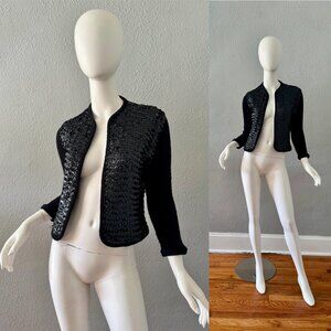 Vintage 50s Black Knit Sequin ORLON Open Cardigan Sweater XS