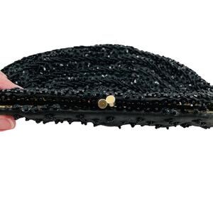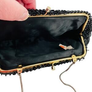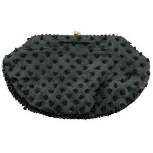 Vintage 50s Black Silk Beaded Formal Evening Bag Clutch Retro Glam