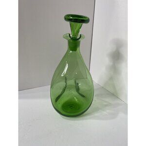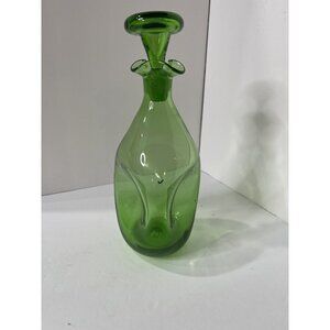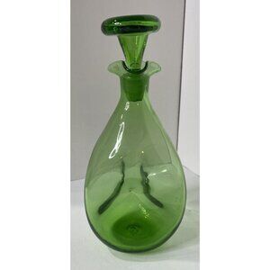 Vintage 50s Blenko Glass #49 Three Sided Pinched Green Glass Decanter Stopper