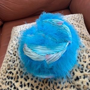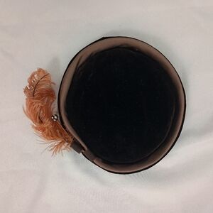 Vintage 50s Brown Bumper Brim Pill Box Hat with Feathers Coffee Espresso