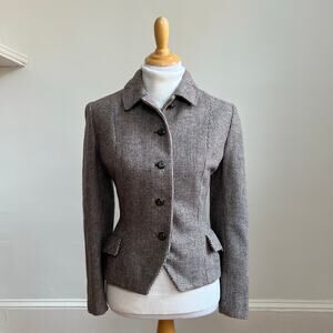 Vintage 50s Brown Wool Tweed Bespoke Blazer Large Quiet Luxury Academia