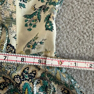 This vintage dress from California Colony is a charming addition to any wardrobe. The dress features a beautiful floral pattern in green and has a sweetheart neckline with strapless sleeveless design. The full skirt has a zip closure and is accented with sequins, adding a touch of glamour to the dress. The fit & flare style is perfect for a casual occasion and the dress is available in size small, with a chest of 24 inches and waist of 20 inches. The dress is ideal for spring and summer seasons and can be personalized to suit your preference.