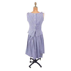 Grab 2 bottles of coke and your finest tuna salad sandwiches and don this vintage 1950s set for your picnic date! This vintage set includes a matching top and skirt in a black and white checkered fabric. The fitted top is sleeveless with trim detail around the front neckline and has adjustable ties at the shoulders and buttons closed with buttons down the back. The matching skirt has a high waistband with button and metal zipper closure.