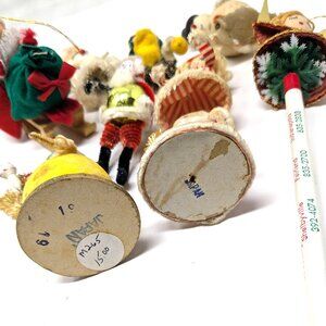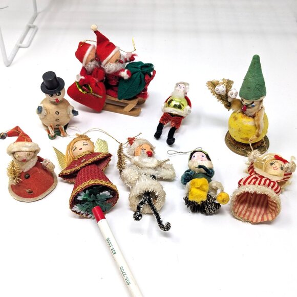 Vintage 50s Christmas Ornaments Japan Spun Cotton Pipe cleaner Felt Putz Lot 9