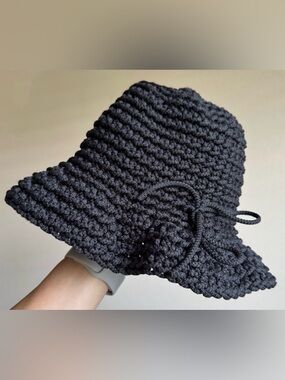 This hat has a wide band of pleated grosgrain ribbon around the top.
