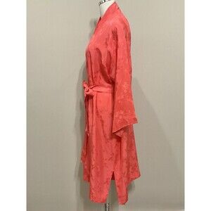 Vintage 50s Dynasty Hong Kong Silk Jacquard Peach Dressing Gown Robe Hostess Med