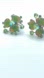 ⧫ green flower / floral / clover design with green prong set rhinestones, aurora borealis, center set rhinestone, and carved oval (tutti-frutti fruit salad) petals that fade to a golden topaz brown color