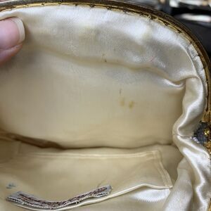 Condition: Exterior- a few loose strands and missing beads. Inside has a few stains and marks. Please see photos for details. Overall in good vintage condition