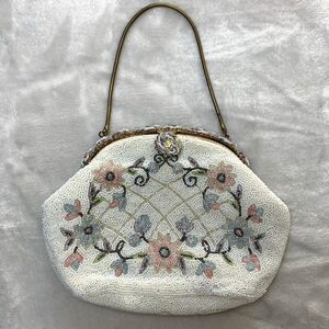 Vintage 50s Ed B. Robinson Micro Bead Handbag Made In France Floral Coquette