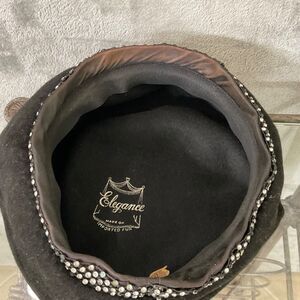 Vintage 50s Elegance Debutante Hat Rhinestone Pill Box Cloche (can be styled either way) Black * 22 US size 7 Shows discolorations see last photos for details.