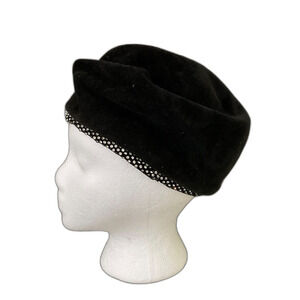 Vintage 50s Elegance Hat Rhinestone Pill Box/Cloche Black * 22 US size 7