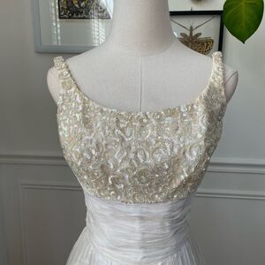 Vintage 50s Emma Domb San Francisco Midi Tea Length Formal Dress Gown Ivory Sequ