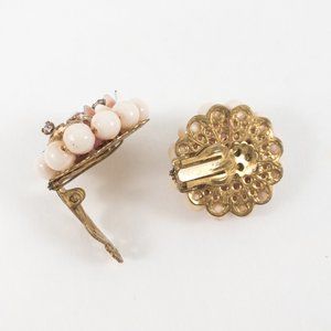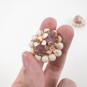 Vintage 50s Enamel Cluster Beaded Earrings Pink