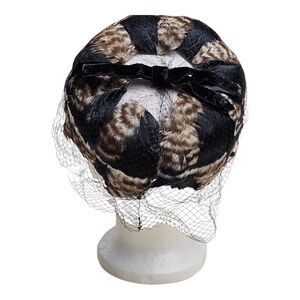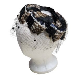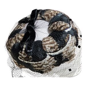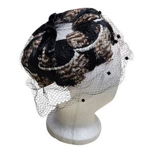 Vintage 50's Feather Trimmed Black Pillbox Hat With Polka Dot Veil Whimsigoth