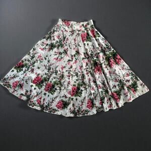 Vintage 50s Full Flared Midi Skirt Ivory Pink Size 8 Romantic Rockabilly Pin Up