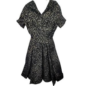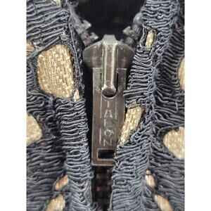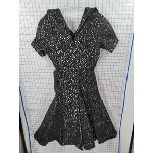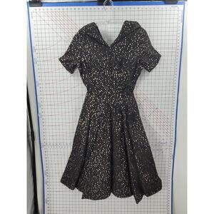 Vintage 50s Gold Lamé Under Black Lace V Neck Short Sleeve A Line Dress