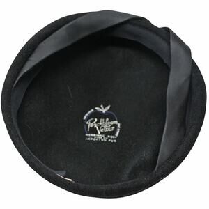 Vintage 50s Hat Black Peachbloom Velour Merrimac Body Rhinestone Trim - Hey Viv