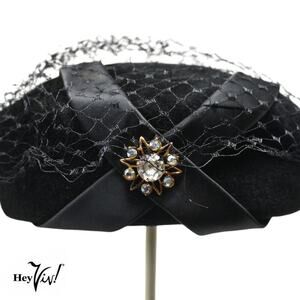 * Special Feature: Vintage 1950s Cocktail Hat has a fancy front with a 1" metal starburst shape with rhinestones.