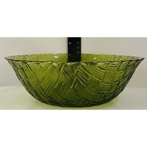 Vintage 50’s Indiana Glass Weavetex Avocado Green Salad Serving Bowl