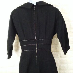 Vintage 50s Little Black Wiggle Dress Lady-M(8) Wool Cowl-Collar Zip-back Fitted