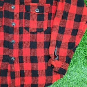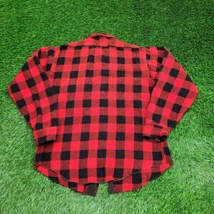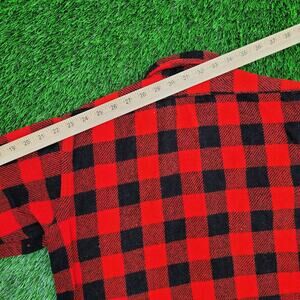 Vintage 50s Melton Wool Button Shirt Large 22x27 Buffalo-Plaid