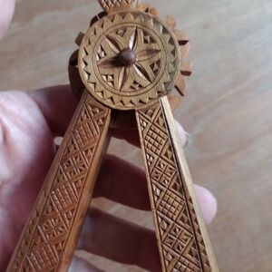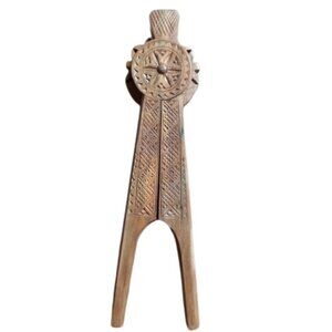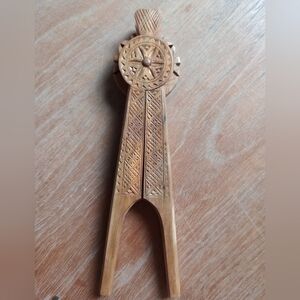 Vintage 50’s Nut Cracker Wood Carved Handles Scandinavian Plier Style Nutcracker