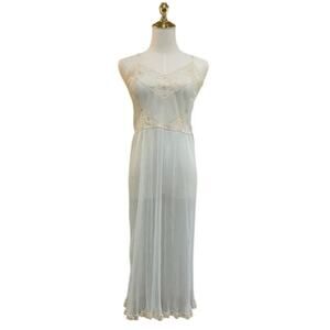 Stunning Vintage 50s Blue Pinup Sheer Nylon Crystal Pleated Lacy Full Slip Dress