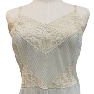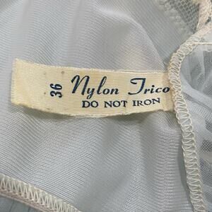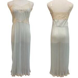 Vintage 50s Pastel Blue Sheer Nylon Crystal Pleated Lacy Full Slip Dress Size 34