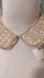 Elegant pearl, rhinestone, and sequined ladies collar. This features a scalloped edge with beading across the front and back with a small hook closure along the back. This vintage 50s collar is lined in a soft silky satin fabric.