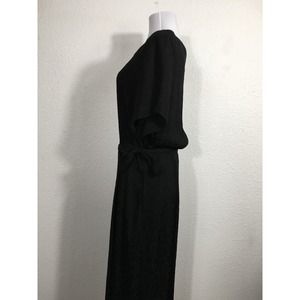 Vintage 50s Peg Palmer Dress Womens Large Black Cocktail Party Side Ties Floral