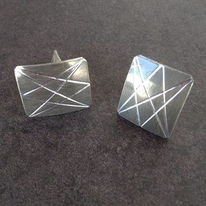Vintage Mid-Century Modern cuff links. 1"x.75", with etched cross pattern. Marked J.F. Pewter, Denmark. (Danish Modernist Jorgen Frandsen) From the early 50's , in good condition.