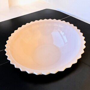 Vintage 50's Pink Milk Glass Bowl Jeannette Buttons & Bows Pattern Large Footed