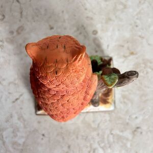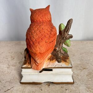 Vintage 50's Porcelain OWL Music Box by J Byron for Royal Crown Tested Brown Orange White