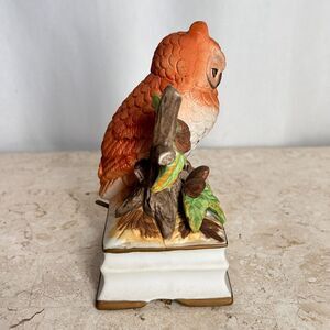 Vintage 50's Porcelain OWL Music Box Royal Crown Tested Brown Orange White