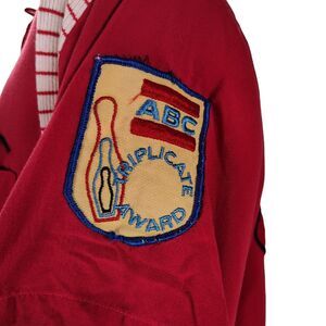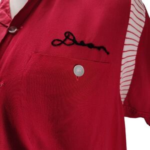 Vintage 50s Rayon Chain Stitch Bowling Shirt Size M Red Dean JCC Men's Club