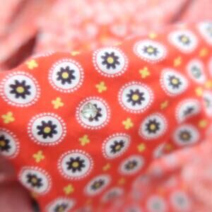 Allover geometric flower print. Full skirt with pockets. Midi length.