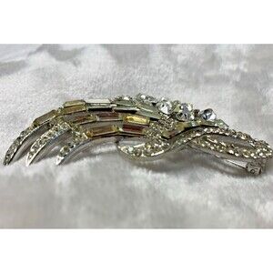 Vintage 50s Rhinestone Brooch Clear Crystal Marquis Baguette Spray Pin Statement
