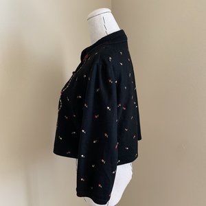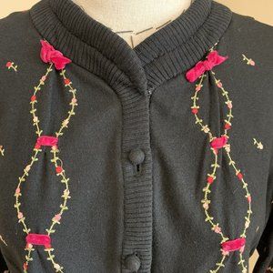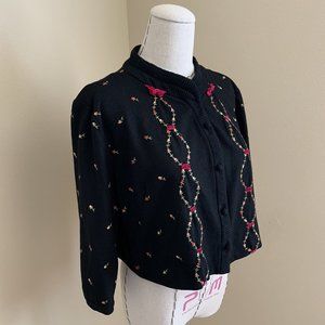 Vintage 50s Rosebud Pink Ribbon Embroidered Cardigan Jacket Rockabilly Pinup