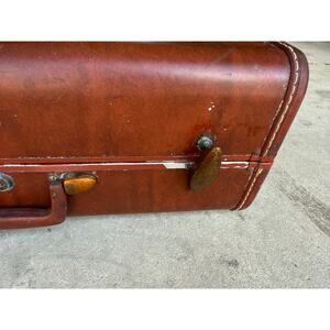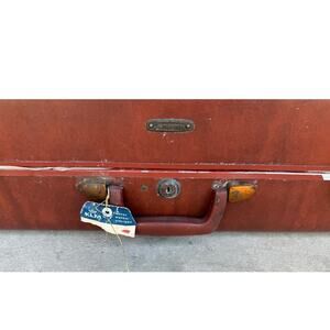 Color/Material: Maroon/brown vulcanized fiber (leather-look) with metal hardware