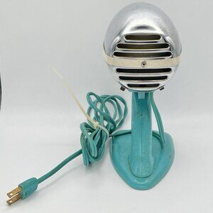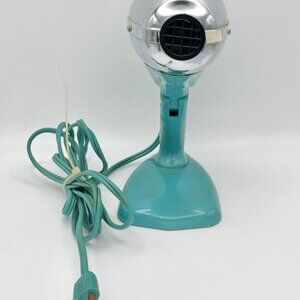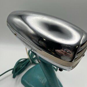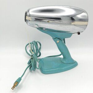 mid century modern, retro vanity, 1950s hair dryer, turquoise chrome, Art Deco, atomic age, Jet Age design, vintage beauty appliance, MCM décor, collectible USA-made