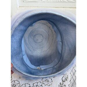 Vintage 50's Straw and Blue Tulle Womens Bucket Hat MOD Fashion