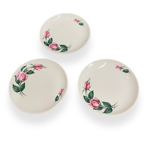 Vintage 50s Universal Ballerina pink rose dessert bread plates set of 3