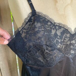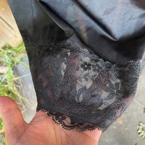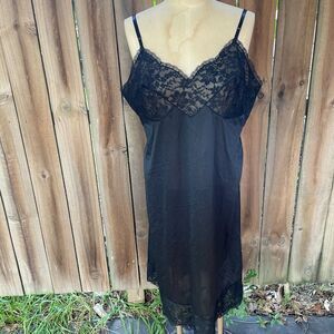 Vintage 50s VANITY FAIR Black Nylon Deep Lace Chiffon Full Slip 42 Tall XXL