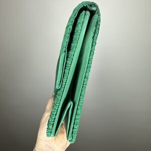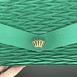Vintage 50s Walborg Green Satin Evening Clutch with Gold Embellishment Handmade