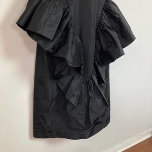 Vintage 50s Womens Black Wiggle Gothic VLV Cocktail Ruffle Bodycon Mad Men Pin-Up Short Sleeve Lace Dress by Nan Parker // Size XS